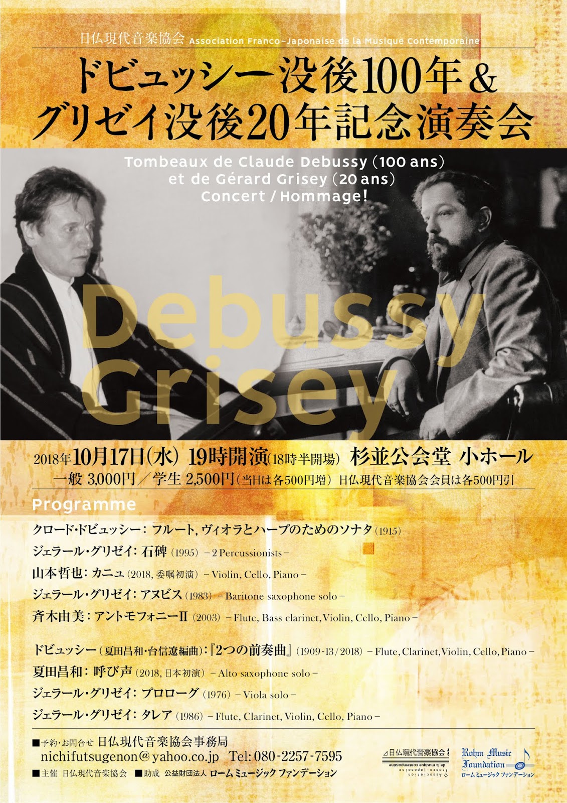 10/17 Concert de Debussy et de Grisey On September.24.2018 14:13:31 In Concert, Evenements Tweet Related Posts Le 15 juillet : conférence publique « L’écriture des instruments à cordes dans les œuvres de Mark Andre » Le 9 JUILLET : PRODUCTION PAR KŌTARŌ FUKUMA, 38ÈME ÉDITION DE « RARE PIANO MUSIC » RÉCITAL DE PIANO D’AKIKO EBI – Concert soutenu LE 12, 13, 14 et 27 JUIN : RÉCITAl DE PIANO DE TAKAYUKI KIGAWA – Concert soutenu LE 4 JUIN : AUTOUR DE LA MUSIQUE JAPONAISE D’AUJOURD’HUI / n° 8