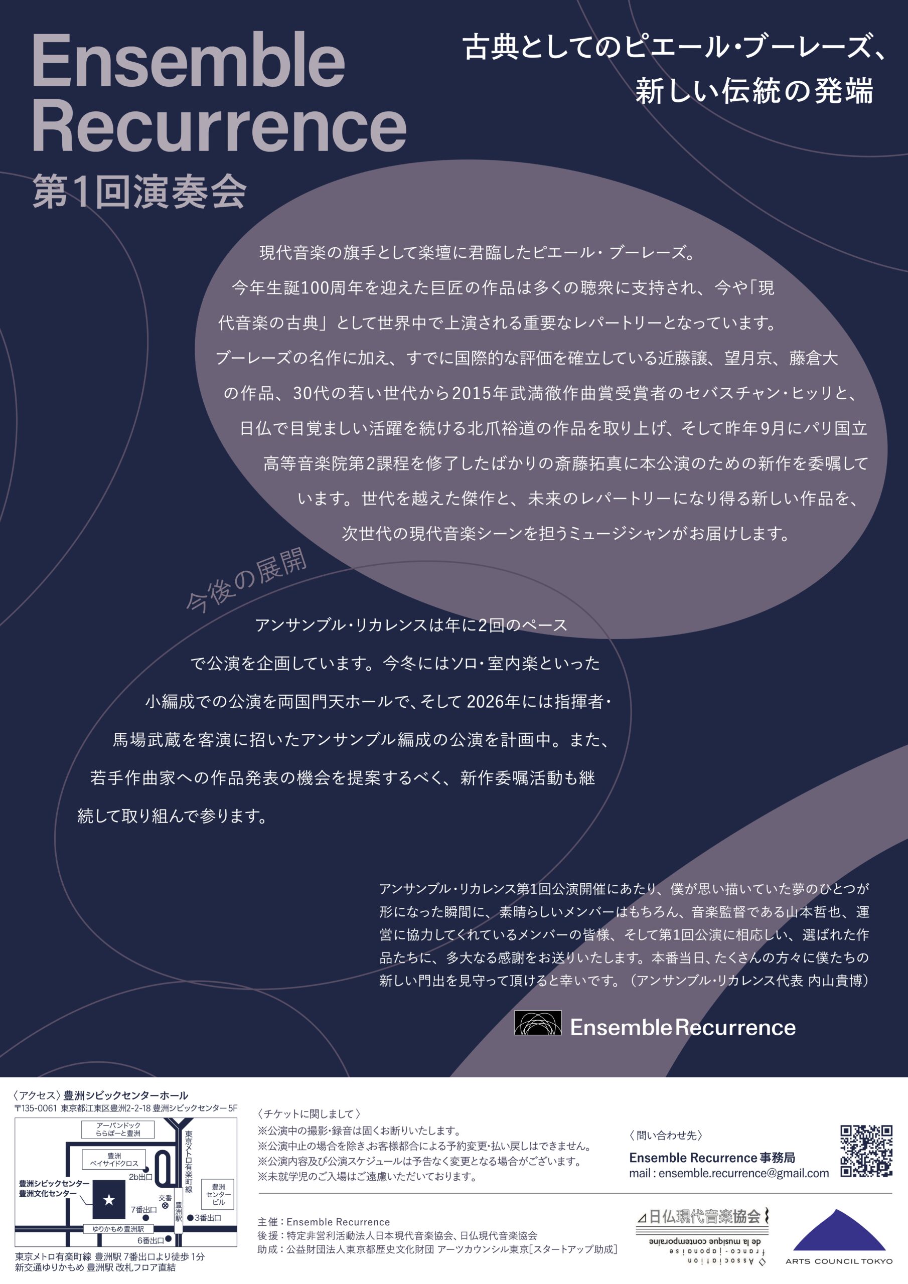 10/9, Ensemble Recurrence 第1回演奏会〜古典としてのピエール・ブーレーズ、新しい伝統の発端(後援演奏会情報)