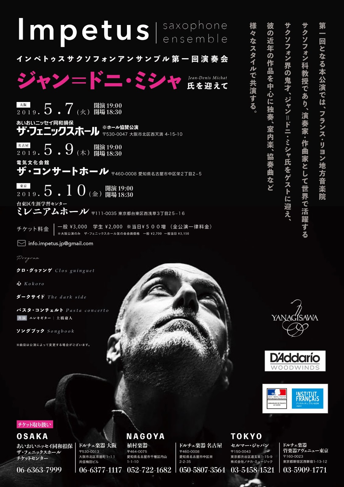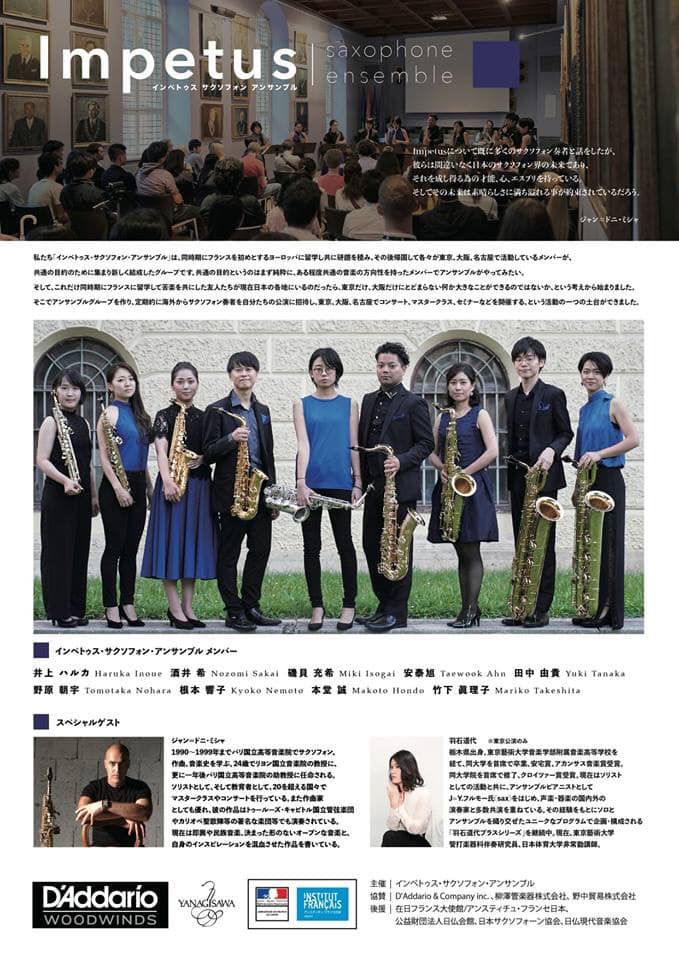 5/7, 5/9, 5/10 インペトゥス・サクソフォン・アンサンブル 第一回演奏会―ジャン=ドニ・ミシャ氏を迎えて―(後援演奏会情報)