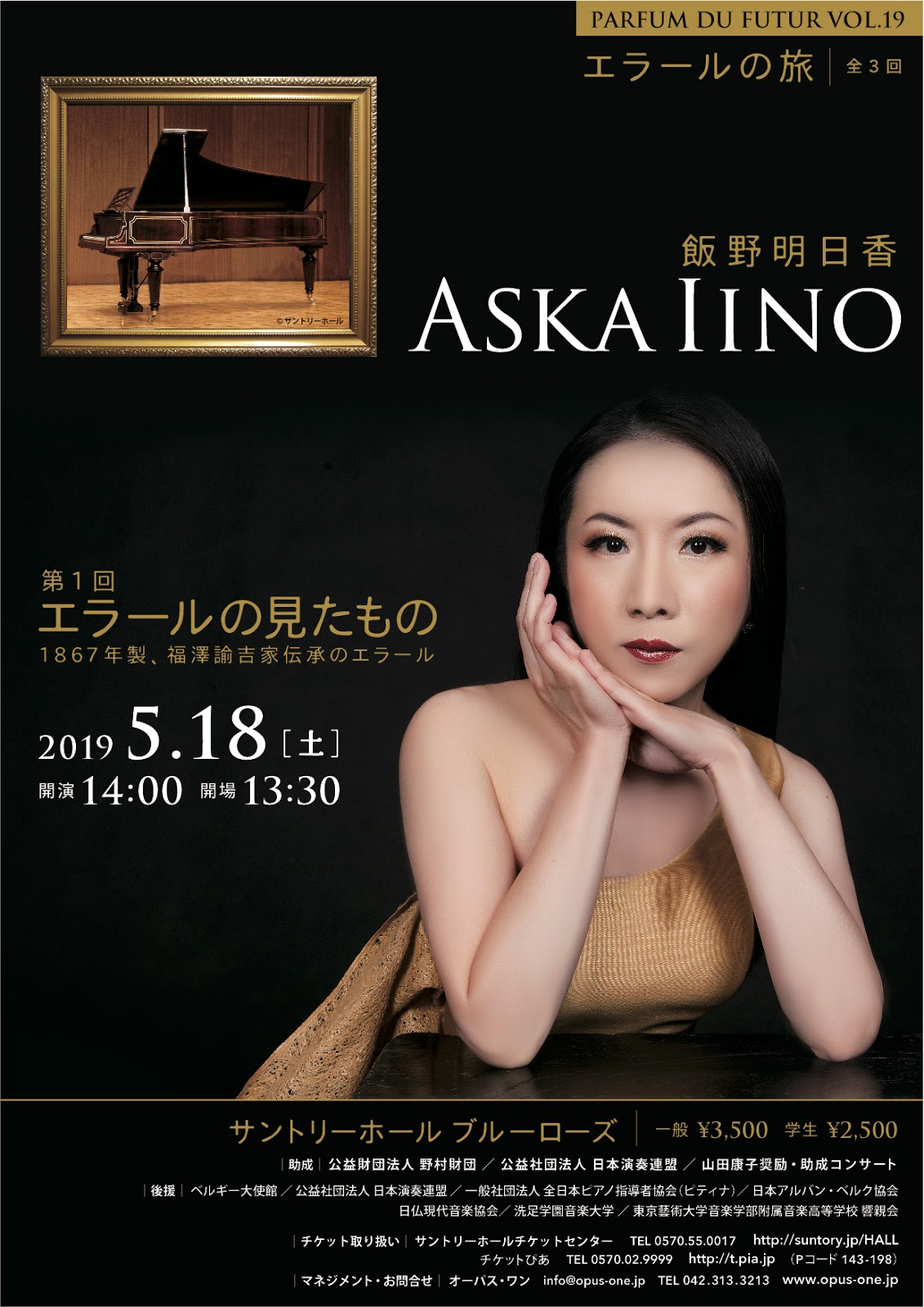 5/18 Parfum du Futur vol.19 飯野明日香ピアノリサイタル「エラールの旅」第1回(後援演奏会情報)
