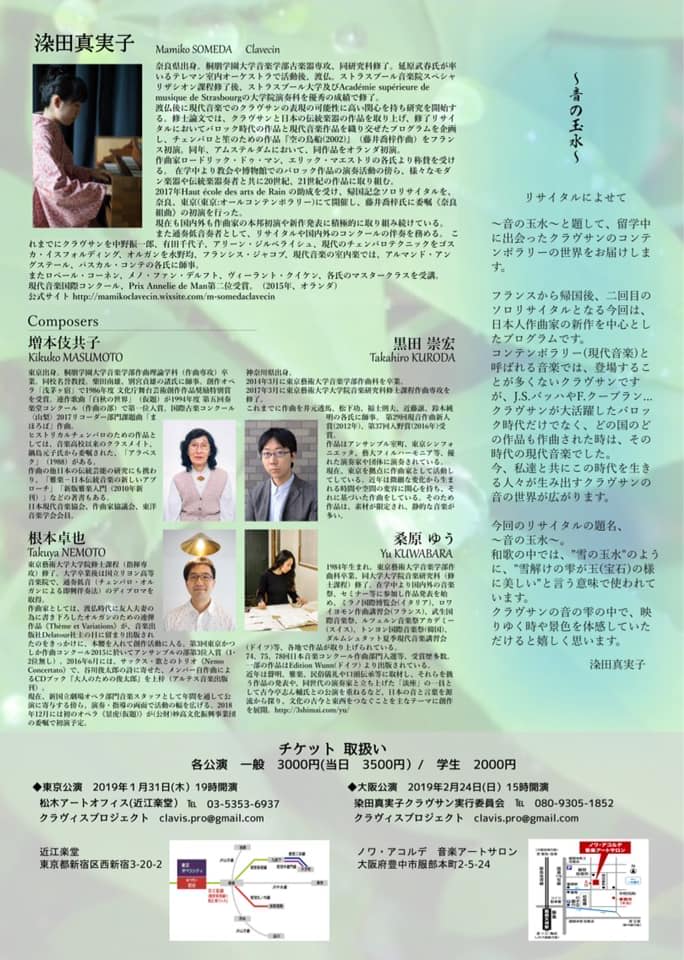 1/31, 2/24 染田真実子clavecinリサイタル〜音の玉水〜(後援演奏会情報)