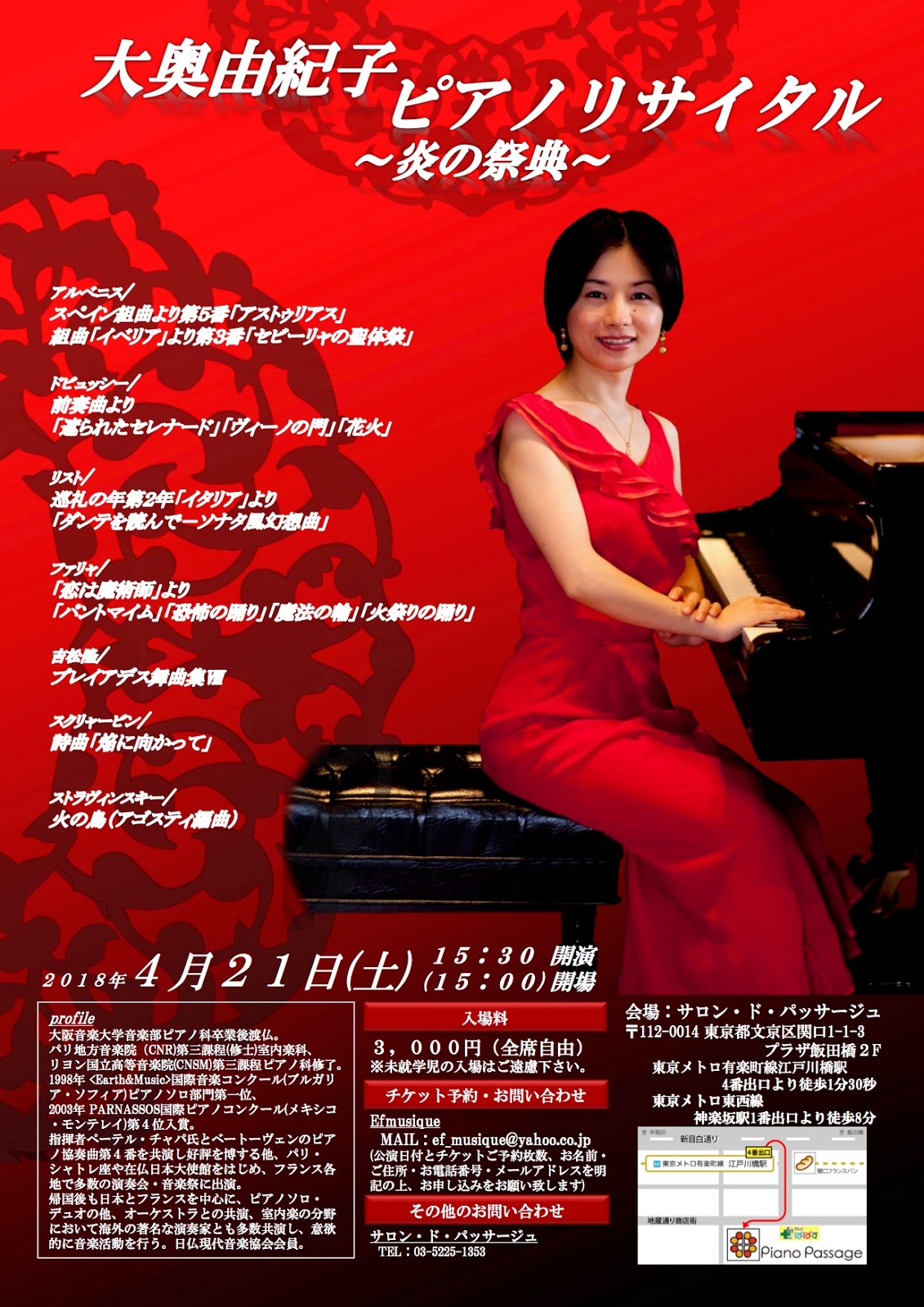 フランスで研鑽を積んだピアニスト大奥由紀子のピアノリサイタル