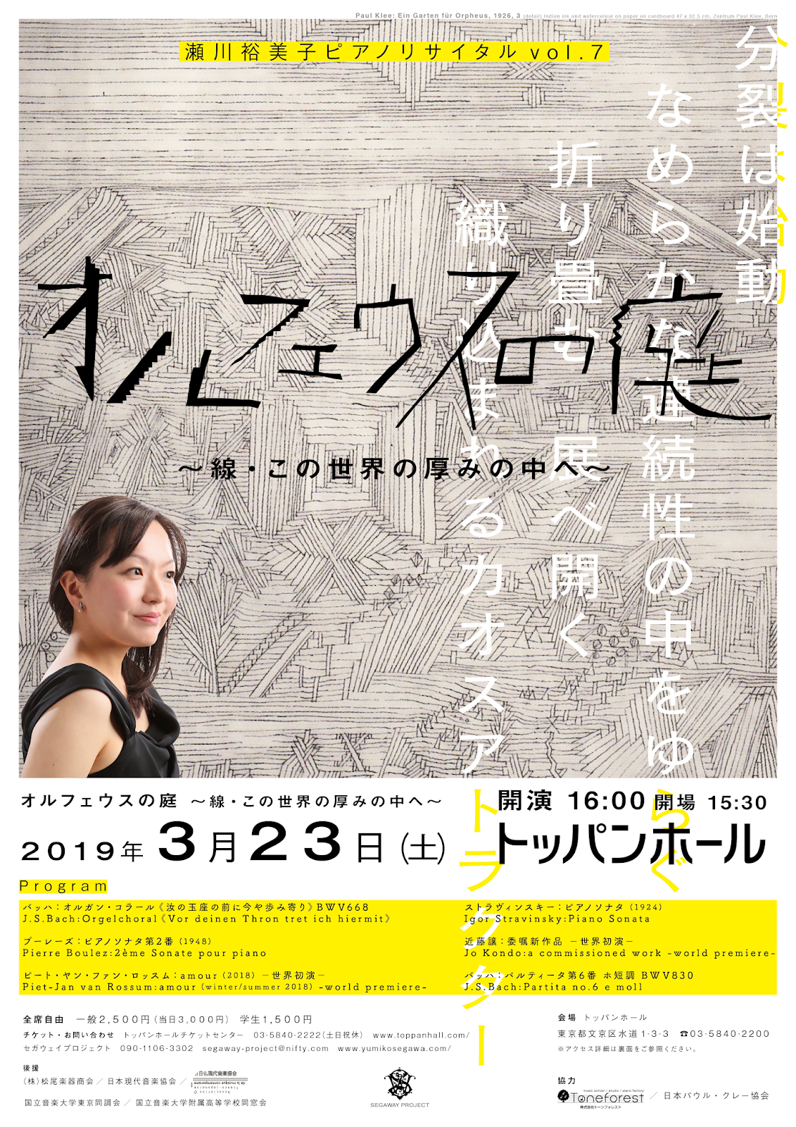 3/23 瀬川裕美子ピアノリサイタルvol.7《オルフェウスの庭~線・この世界の厚みの中へ~》(後援演奏会情報)